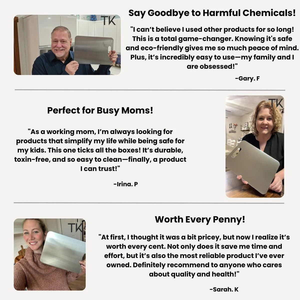 - Gaat met gemak 10+ jaar mee in tegenstelling tot houten (5-8 jaar) en plastic (1-3 jaar) snijplanken. Gebruik beide zijden voor verschillende ingrediënten en geniet van nog meer duurzaamheid! En daar komt nog bij, dat door de titanium snijplank ook je messen gemiddeld 10x langer meegaan!